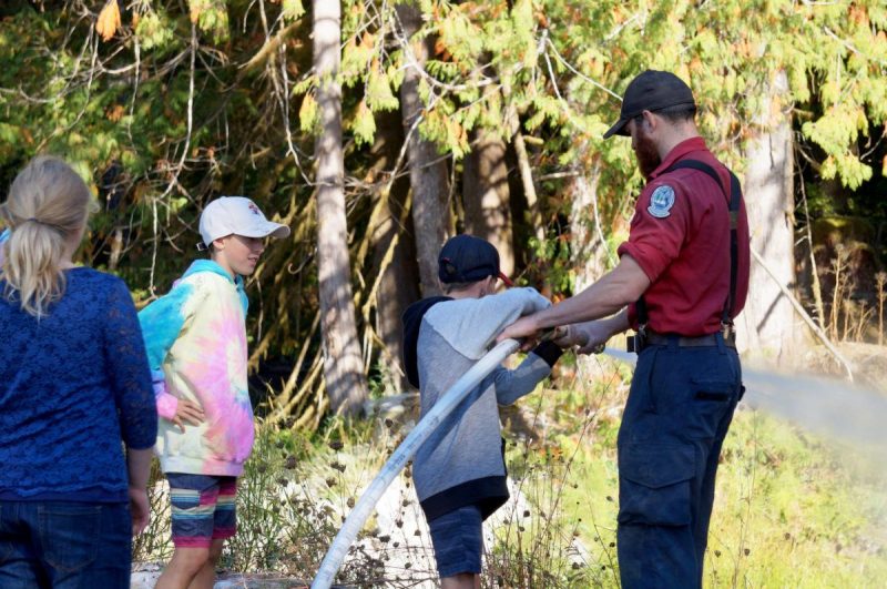 More than 300 Grade 4 and 5 students in the Alberni Valley participated in logging demonstrations, stream riparian and fish discussion, wildfire prevention activities and much more under the forestry umbrella at McLean Mill on Sept. 28 for National Forest Week. The event was put on by Port Alberni’s Ministry of Lands and Natural Resources office in partnership with local environmental organizations and forestry companies. Students learned everything from types of trees, to fish habitats to fighting wildfires and how First Nations use cedar to weave. “The kids are so excited, they’re learning so much,” said Rhonda Morris, district manager, South Island natural resource district. “Hupacasath and Toquaht First Nations are both here today, some of their elders are sharing their crafts with cedar, bark stripping and making jewelry and paddles.
