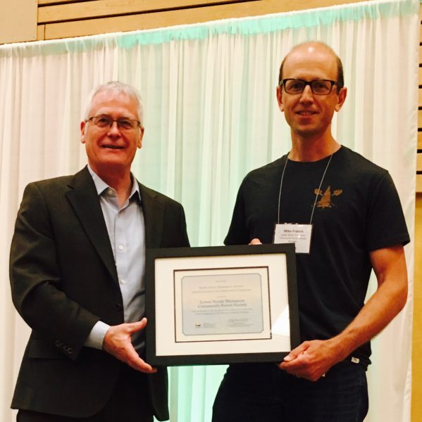 Burns Lake – The Lower North Thompson Community Forest Society (LNTCFS) was given the Robin Hood Memorial Award for Excellence in Community Forestry by Doug Donaldson, Minister of Forests Lands, Natural Resource Operations and Rural Development. Mike Francis, Manager accepted the award on behalf of the community forest. The award was presented last week during the 2018 BC Community Forest Association (BCCFA) Conference hosted by the Burns Lake, Chinook and Cheslatta Community Forests.