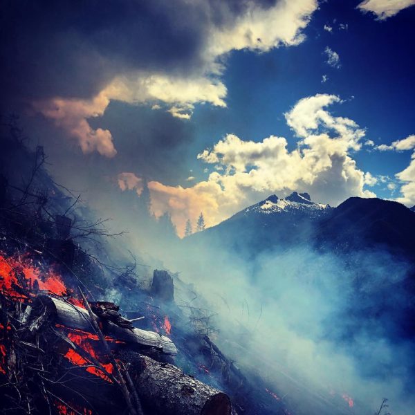 BCWFS ignited our prescribed slash burn shortly after 9 AM. The crew is burning from the top of the cutblock down in narrow strips to reduce risk of escape. Slash is still damp from the rain which creates a mellow burn. Winds are heading to the South, avoiding Kaslo altogether. The whole block perimeter is surrounded with 1 1/2 inch water hose, guarding flames from reaching the timber. The crew will spend tomorrow mopping up hot spots along the block perimeter. More rain is forecast later in the week aiding in extinguishing any lingering heat. The cutblock is scheduled for planting June 20.